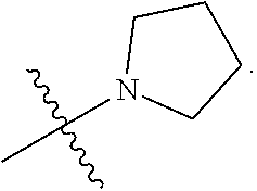 The above residue was taken up in a mixture of pyrrolidine (2.20 mL, 26 mmol) and THF (15 mL). The mixture was transferred into a pressure flask and heated at 68 C overnight. The mixture was cooled and concentrated under reduced pressure. The residue was taken up in a mixture of hexane, ethyl acetate and Et3N (80:20:1) and was filtered through a short column of silica gel and washed with the same solvent mixture. Concentration of the filtrate gave yellow oil/solid (359 mg). The crude product (359 mg) was further purified by flash dry column chromatography on silica gel (0 to 5% MeOH in chloroform). The desired product was obtained as colorless oil (165 mg).