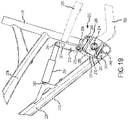 FIG. 18 illustrates a cross-sectional view of the front frame and rear suspension system shown in FIG. 11, with the rear frame removed, as taken along line 18-18 of FIG. 16.
