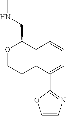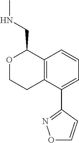 A solution of (R)-tert-butyl (6-(isoxazol-5-yl)-1,3,4,5-tetrahydrobenzo[c]oxepin-1-yl)methyl(methyl)carbamate (700 mg, 1.95 mmol) in 3 M HCl/MeOH (30 mL) was stirred at room temperature for 2 h. Then the mixture was concentrated in vacuo. The residue was added EA (10 mL). The mixture was stirred at room temperature for 10 min then filtered. The solid was collected and dried in vacuo to provide methyl({[(R)-6-(1,2-oxazol-5-yl)-1,3,45-tetrahydro-2-benzoxepin-1-yl]methyl})amine (HCl salt) (443 mg, 1.50 mmol) as a white solid (Yield=77%). MS(ESI): m/z 259 [M+H]+. 1H NMR (400 MHz, CD3OD): δ 6.50 (d, J=1.6 Hz, 1H), 7.50-7.48 (m, 1H), 7.40-7.34 (m, 2H), 6.56 (d, J=2.0 Hz, 1H), 5.16-5.13 (m, 1H), 4.34-4.29 (m, 1H), 4.03-3.96 (m, 1H), 3.68-3.60 (m, 2H), 3.26-3.20 (m, 1H), 3.07-3.00 (m 1H), 2.87 (s, 3H), 1.92-1.86 (m, 2H). Chiral HPLC: column: OD-H (4.6×100×5 um); Co-Solvent: MeOH (0.2% Methanol Ammonia); CO2 Flow Rate: 3.4; Co-Solvent Flow Rate: 0.6; Co-Solvent %: 15; Column Temperature: 40.3° C.; Ret Time=1.81 min; Enantiopurity: 97% ee.