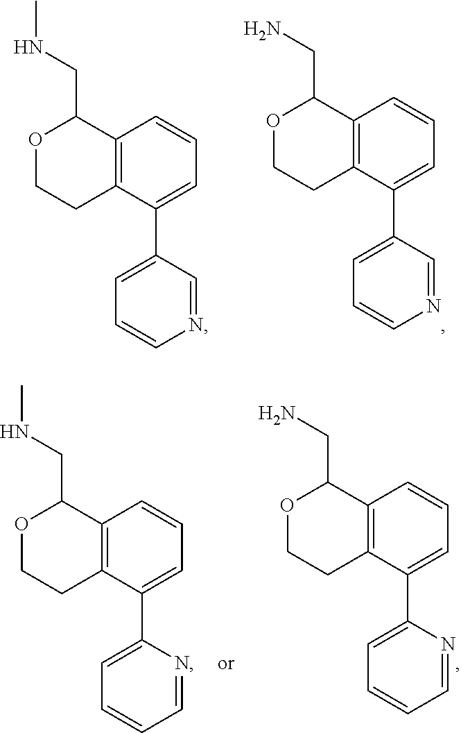 Compounds 132-147 may be prepared using the procedure described in Scheme 12, substituting the appropriate arylboronic acid for pyridine-3-boronic acid. Compounds 152-155, 160-163, 172-175 may be prepared using the procedure described in Scheme 23, substituting an appropriate heteroaryl bromide for 2-bromopyridine. Compounds 190-193 may be prepared using the procedure shown in Scheme 26, substituting 1,3,4-triazole for pyrazole. Compounds 194 and 195 may be prepared using the procedure described in Scheme 7, substituting pyridine-4-boronic acid for pyridine-3-boronic acid, and substituting N,N-dimethyl-2,2-dimethoxyethanamine for 2,2-dimethoxyethanamine.