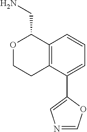 A solution of (R)-tert-butyl (6-(isoxazol-5-yl)-1,3,4,5-tetrahydrobenzo[c]oxepin-1-yl)methylcarbamate (550 mg, 1.59 mmol) in 3 M HCl/MeOH (30 mL) was stirred at room temperature for 2 h. The mixture was concentrated in vacuo. EA (8 mL) was added to the residue and the mixture was stirred at room temperature for 10 min. The mixture was filtered. The solid was collected and dried in vacuo to provide 1-[(1R)-6-(1,2-oxazol-5-yl)-1,3,4,5-tetrahydro-2-benzoxepin-1-yl]methanamine (HCl salt) (368 mg, 1.31 mmol) as a white solid (Yield=82%). MS(ESI): m z 245 [M+H]+. 1H NMR (CD3OD, 400 MHz): δ 8.50 (d, J=2.0 Hz, 1H), 7.50-7.48 (m, 1H), 7.40-7.33 (m, 2H), 6.56 (d, J=1.6 Hz, 1H), 5.05-5.02 (m, 1H), 4.35-4.30 (m, 1H), 4.02-3.95 (m, 1H), 3.59-3.55 (m, 1H), 3.52-3.46 (m, 1H), 3.26-3.20 (m, 1H), 3.06-2.99 (m, 1H), 1.92-1.86 (m, 2H). Chiral HPLC: column: AY-H 100×4.6 mm 5 um: Co-Solvent: EtOH (1% Methanol Ammonia): CO2 Flow Rate: 3.2; Co-Solvent Flow Rate: 0.8; Co-Solvent %: 20; Column Temperature: 40° C.: Ret Time=4.4 min; Enantiopurity: 100% ee.