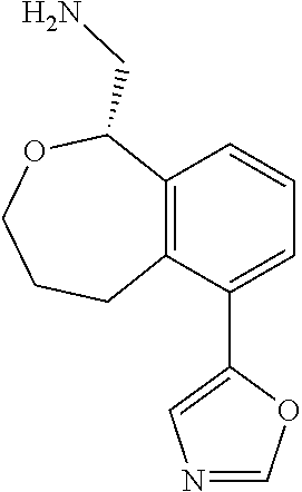 tert-butyl N-([6-(1,3-Oxazol-5-yl)-1,3,4,5-tetrahydro-2-benzoxepin-1-yl]methyl)carbamate (3.2 g, 9.29 mmol) was chiral separated using column: RRWHELK 20×250 mm, 10 um (Daicel) and Mobile phase: CO2/IPA (0.2% Methanol Ammonia)=70/30 to get (R)-tert-butyl (6-(oxazol-5-yl)-1,3,4,5-tetrahydrobenzo[c]oxepin-1-yl)methylcarbamate (1.3 g) as a yellow oil. Chiral HPLC: column: (RR)-Whelk-O1 4.6×100 mm 5 um; Co-Solvent: IPA (0.1% DEA); CO2 Flow Rate: 2.8: Co-Solvent Flow Rate: 1.2: Co-Solvent %: 30: Column Temperature: 40° C.; Ret Time=1.2 min: Enantiopurity: 99% ee: and (S)-tert-butyl (6-(oxazol-5-yl)-1,3,4,5-tetrahydrobenzo[c]oxepin-1-yl)methylcarbamate (1.3 g) as a yellow oil. Chiral: column: (R,R)-Whelk-O1 4.6×100 mm 5 um; Co-Solvent: IPA (0.1% DEA); CO2 Flow Rate: 2.8: Co-Solvent Flow Rate: 1.2: Co-Solvent %: 30: Column Temperature: 40° C.; Ret Time=1.46 min: Enantiopurity: 96% ee.