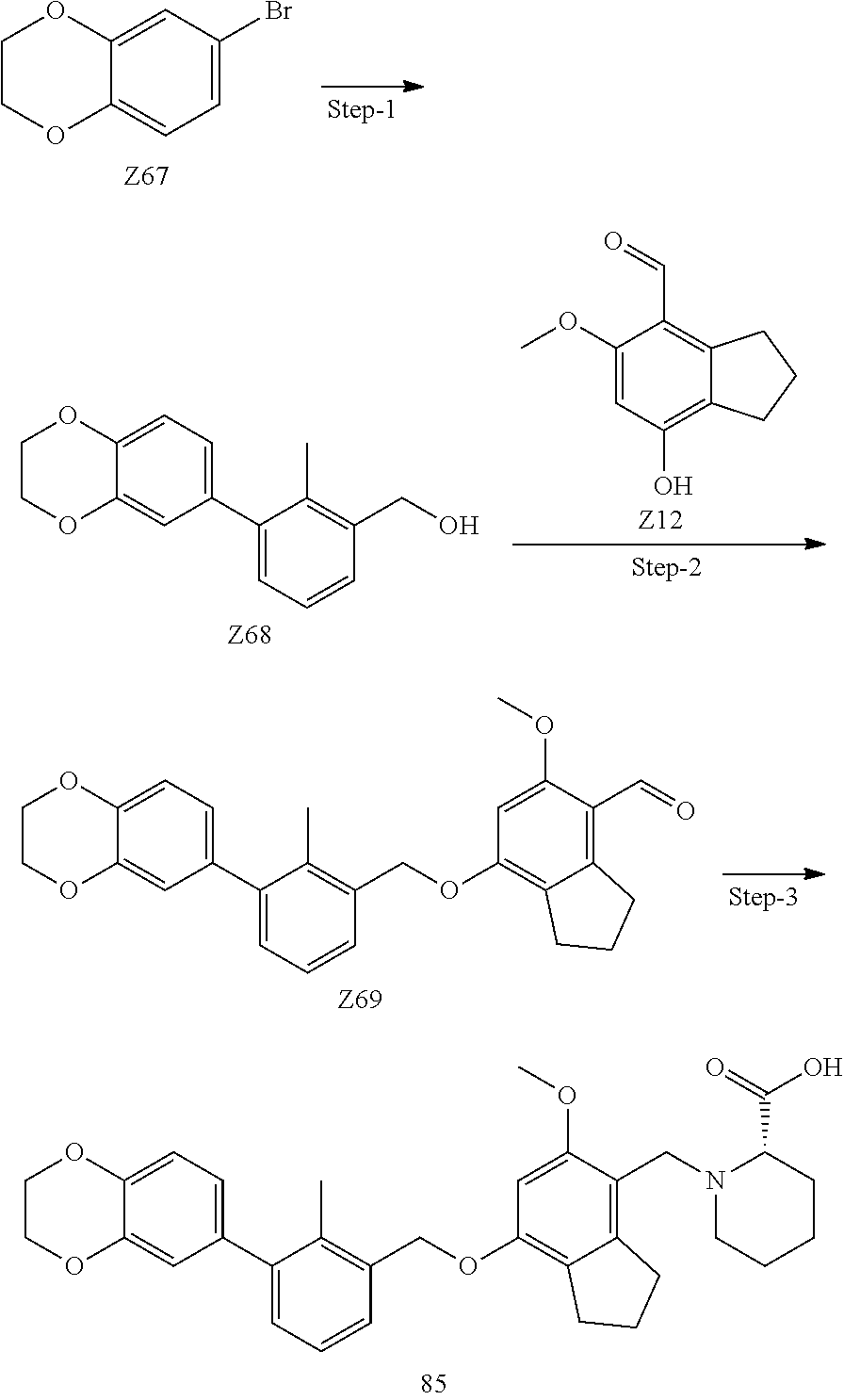- KLFFDGCXSQNCJV-XGGQFZQSSA-N Brc1ccc2c(c1)OCCO2.COc1cc(O)c2c(c1C=O)CCC2.COc1cc(OCc2cccc(-c3ccc4c(c3)OCCO4)c2C)c2c(c1C=O)CCC2.COc1cc(OCc2cccc(-c3ccc4c(c3)OCCO4)c2C)c2c(c1CN1CCCC[C@H]1C(=O)O)CCC2.Cc1c(CO)cccc1-c1ccc2c(c1)OCCO2 Chemical compound Brc1ccc2c(c1)OCCO2.COc1cc(O)c2c(c1C=O)CCC2.COc1cc(OCc2cccc(-c3ccc4c(c3)OCCO4)c2C)c2c(c1C=O)CCC2.COc1cc(OCc2cccc(-c3ccc4c(c3)OCCO4)c2C)c2c(c1CN1CCCC[C@H]1C(=O)O)CCC2.Cc1c(CO)cccc1-c1ccc2c(c1)OCCO2 KLFFDGCXSQNCJV-XGGQFZQSSA-N 0.000 description 1