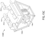 In another embodiment, as illustrated in FIG. 15D, the carrier 1510 includes one or more rollers 1511. For example, the rollers 1511 are powered. In another embodiment, the carrier 1510 includes one or more conductor bars 1512. In another embodiment, the one or more conductor bars 1512 include one or more conducting plates 1512 a. It is noted the field engagement unit 102 may include one or more control systems components to determine the position of the power source work tool assembly 1500 on the work tool rail assembly 108 including, but not limited to, one or more rotary or linear encoders on the one or more conductor bars 1512, as well as bar codes, UTC codes, etc.