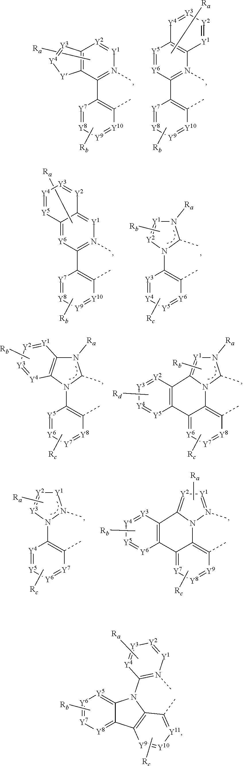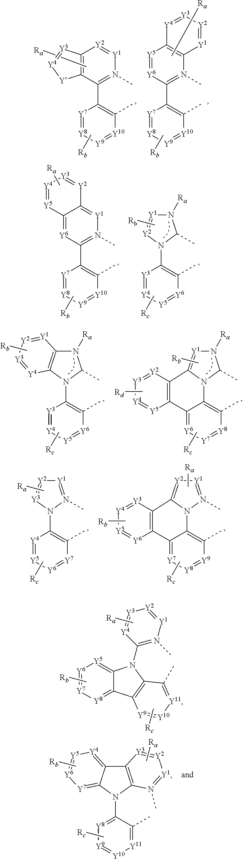 101 is an another ligand; k′ is an integer value from 1 to the maximum number of ligands that may be attached to the metal; and k′+k″ is the maximum number of ligands that may be attached to the metal.