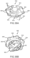 FIGS. 36A-36E are, respectively, top isometric, bottom isometric, top, side, and bottom views of a base plate 3600 having a central fin 3602 (major fin). As seen in the figures, the base plate 3600 includes a base structure 3604 having a scalloped perimeter 3606 for ease of visibility during implantation, anchor bores 3608 extending through the base structure 3604, and a male taper or trunnion 3610 extending upward from the top surface of the base structure 3604. The fin 3602 is on the opposite side of the base structure 3604 from the trunnion 3610. The base plate 3600 further includes an attachment structure 3616 in the form of a pair of minor fins 3618, one on either side of the central fin 3602, a transverse minor fin 3620 extending across the minor fins 3618 and the central fin 3602 at a central portion thereof, and a tubular wall 3624 encircling the minor fins 3618 and transverse minor fin 3620. The tubular wall 3624 also intersects the central fin 3602.