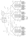 The displays 102 through 120 may be an output device for display of information and the television set may be a device that combines elements of a tuner, display, and loudspeakers for the purpose of viewing information. As shown, groups of set-top boxes are secured to splitters 80, 82, 84, which may act as directional couplers, which are passive devices used in the field of RF that couple a defined amount of the electromagnetic power in a transmission line to a port enabling the RF signal to be used by multiple set-top boxes.