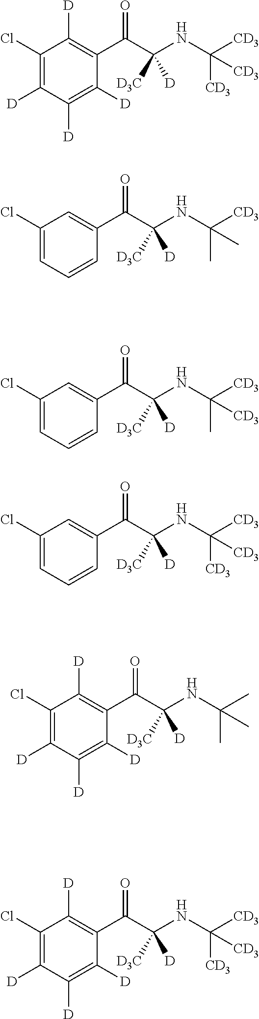- Some embodiments include a method of inhibiting the metabolism of dextromethorphan, comprising administering bupropion to a human being, wherein the human being is an extensive metabolizer of dextromethorphan, and wherein dextromethorphan is present in the body of the human being at the same time as bupropion.
