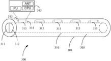 In one embodiment, the core 310 comprises a bus portion 311 for transmitting information and data. In one embodiment, the bus portion 311 comprises a metal-based cable 311 for transmitting information and data. No difference will be made between data and information for the purposes of this application and they will both be referred to as information or data interchangably. In one embodiment, the bus portion 311 comprises an optical fibre for transmitting information and data between the antenna devices 315 and a processing unit (not shown in FIG. 3 ).