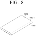 FIGS. 8 and 9 illustrate other examples of the user terminal device 1000 including the bended touch screen which is divided into two sub areas and one main area. Referring to FIGS. 8 and 9 , the bended touch screen 100 is divided into the main area 1010, the first sub area 1020 arranged on the side surface, and the second sub area 1030 arranged on the back surface of the user terminal device 1000. In FIG. 9 , the second sub area 1030 may be arranged on a part of the back surface without covering all of the back surface. The controller 200 may divide the main area 1010, the first sub area 1020, and the second sub area 1030 based on the first boundary area 1050-1 and the third boundary area 1050-3, respectively, and display different contents in each area.