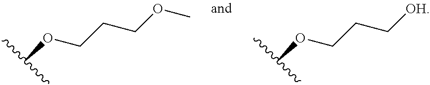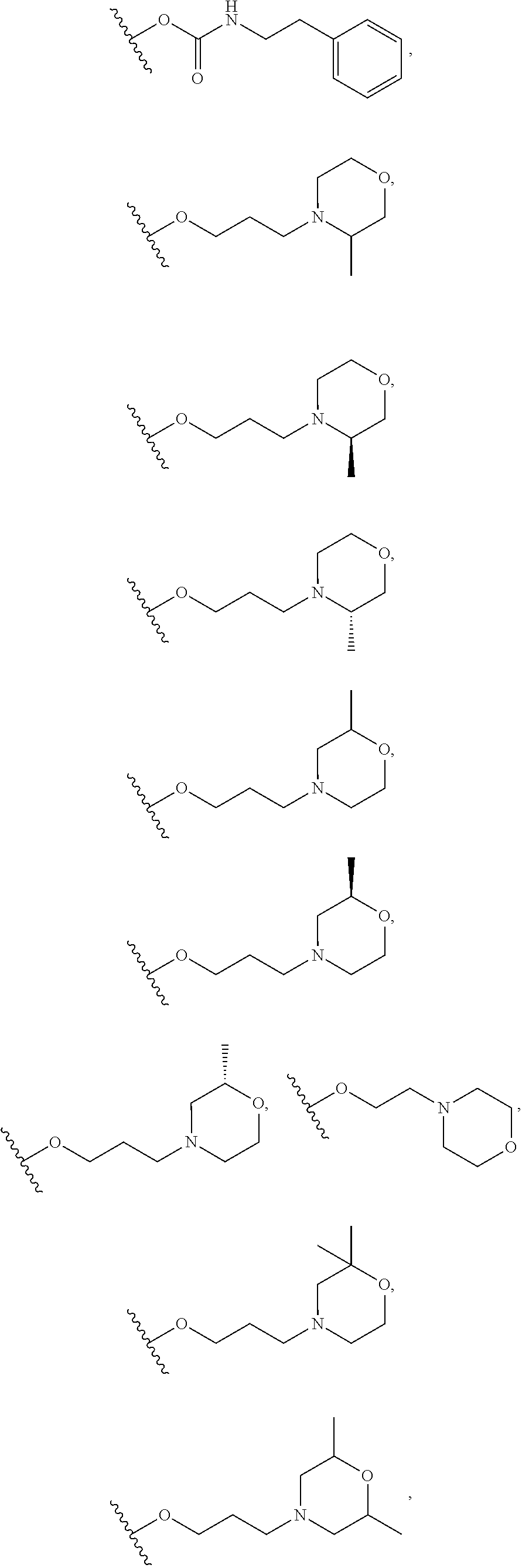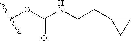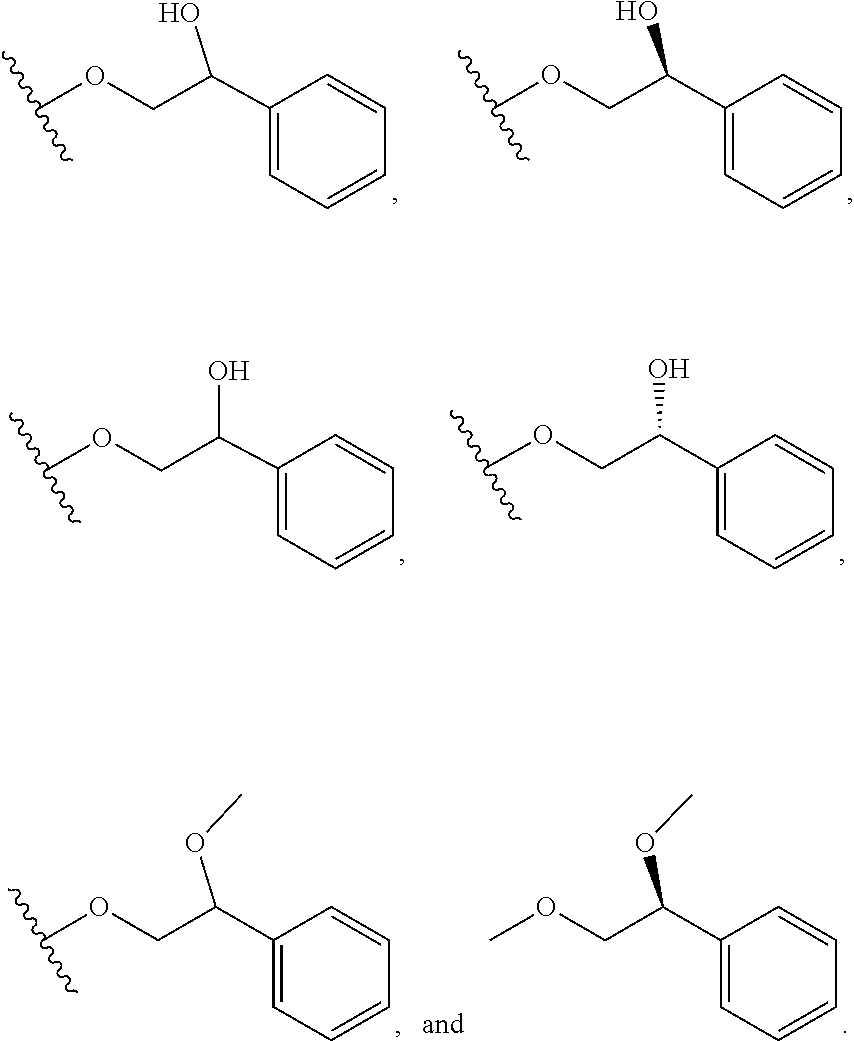 In some embodiments, substituents may include any substituents described herein, for example: halogen, hydroxy, oxo (═O), thioxo (═S), cyano (—CN), nitro (—NO2), imino (═N—H), oximo (═N—OH), hydrazino (═N—NH2), —Rb—ORa, —Rb—OC(O)—Ra, —Rb—OC(O)—ORa, —Rb—OC(O)—N(Ra)2, —Rb—N(Ra)2, —Rb—C(O)Ra, —Rb—C(O)ORa, —Rb—C(O)N(Ra)2, —Rb—O—Rc—C(O)N(Ra)2, —Rb—N(Ra)C(O)ORa, —Rb—N(Ra)C(O)Ra, —Rb—N (Ra)S(O)tRa (where t is 1 or 2), —Rb—S(O)tRa (where t is 1 or 2), —Rb—S(O)tORa (where t is 1 or 2), and —Rb—S(O)tN(Ra)2 (where t is 1 or 2); and alkyl, alkenyl, alkynyl, aryl, aralkyl, aralkenyl, aralkynyl, cycloalkyl, cycloalkylalkyl, heterocycloalkyl, heterocycloalkylalkyl, heteroaryl, and heteroarylalkyl any of which may be optionally substituted by alkyl, alkenyl, alkynyl, halogen, haloalkyl, haloalkenyl, haloalkynyl, oxo (═O), thioxo (═S), cyano (—CN), nitro (—NO2), imino (═N—H), oximo (═N—OH), hydrazine (═N—NH2), —Rb—ORa, —Rb—OC(O)—Ra, —Rb—OC(O)—ORa, —Rb—OC(O)—N(Ra)2, —Rb—N(Ra)2, —Rb—C(O)Ra, —Rb—C(O)ORa, —Rb—C(O)N(Ra)2, —Rb—O—Rc—C(O)N(Ra)2, —Rb—N(Ra)C(O)ORa, —Rb—N(Ra)C(O)Ra, —Rb—N (Ra)S(O)tRa (where t is 1 or 2), —Rb—S(O)tRa (where t is 1 or 2), —Rb—S(O)tORa (where t is 1 or 2) and —Rb—S(O)tN(Ra)2 (where t is 1 or 2); wherein each Ra is independently selected from hydrogen, alkyl, cycloalkyl, cycloalkylalkyl, aryl, aralkyl, heterocycloalkyl, heterocycloalkylalkyl, heteroaryl, or heteroarylalkyl, wherein each Ra, valence permitting, may be optionally substituted with alkyl, alkenyl, alkynyl, halogen, haloalkyl, haloalkenyl, haloalkynyl, oxo (═O), thioxo (═S), cyano (—CN), nitro (—NO2), imino (═N—H), oximo (═N—OH), hydrazine (═N—NH2), —Rb—ORa, —Rb—OC(O)—Ra, —Rb—OC(O)—ORa, —Rb—OC(O)—N(Ra)2, —Rb—N(Ra)2, —Rb—C(O)Ra, —Rb—C(O)ORa, —Rb—C(O)N(Ra)2, —Rb—O—Rc—C(O)N(Ra)2, —Rb—N(Ra)C(O)ORa, —Rb—N(Ra)C(O)Ra, —Rb—N (Ra)S(O)tRa (where t is 1 or 2), —Rb—S(O)tRa (where t is 1 or 2), —Rb—S(O)tORa (where t is 1 or 2) and —Rb—S(O)tN(Ra)2 (where t is 1 or 2); and wherein each Rb is independently selected from a direct bond or a straight or branched alkylene, alkenylene, or alkynylene chain, and each Rc is a straight or branched alkylene, alkenylene or alkynylene chain. It will be understood by those skilled in the art that substituents can themselves be substituted, if appropriate.