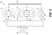 As used herein, two LEDs 40 that are serially connected are two LEDs 40 that are electrically connected in serial so that a first terminal of an LED 40 is electrically connected to a second terminal of another LED 40. Another of the terminals of each of the two LEDs 40 is electrically connected to common voltage signal 54 or common ground signal 56 and a control signal (e.g., first current control signal 61, second current control signal 62, or third current control signal 63), respectively. First terminals of two LEDs 40 that are electrically connected in parallel are connected together and second terminals of the two parallel-connected LEDs 40 are likewise connected together. The first and second terminals are electrically connected to common voltage signal 54 or common ground signal 56 and a control signal (e.g., first current control signal 61, second current control signal 62, or third current control signal 63), respectively. Both LEDs 40 are biased in the same forward direction. When one or more LEDs 40 is only one LED 40, one LED 40 being serially connected (or parallel connected) means LED 40 is simply electrically connected, by itself, to common voltage signal 54 or common ground signal 56 and a control signal (e.g., first current control signal 61, second current control signal 62, or third current control signal 63), respectively.
