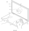 The computing device 4800 a may receive the properties of the input gesture and perform an operation in accordance with the input. For example, the computing device 4800 a may manipulate or change what is displayed on the display 4805 a in response to the input. FIG. 48A, for example, shows a cursor 4812 having been moved along a path 4811 from an initial position 4810 to a second position. The path 4811 may correspond to the path 4808. For example, the path 4811 may have a direction and length that is the same as or is a scaled representation of the path 4808. The cursor path 4811 shown in FIG. 48A is merely an example of an operation that the computing device 4800 a may perform in response to the depicted input, and other user interface manipulations or functional operations are also possible.