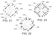 FIG. 21 is a circumferential cross section at S21-S21 of the central transition section 460 of FIG. 20 . Looking in the distal direction, one sees in cross section, the three concentric tubes the sheath 312, middle tube 415 and inner tube 416. Inside the inner tube one sees the proximal end of the manifold 410 and the proximal ends of the four injector tubes 316. It can clearly be seen that the manifold 410 seals the four injector tubes 316 into the inner tube 416 and the lumens 321 of the injector tubes 316 open into the lumen 421 of the inner tube 416.