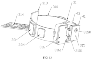 FIG. 12 shows that the annular portion 310 is divided into two sections by the device portion 313 and the intersection position. The outer side surface of each section has two pads 311, and each pad has a conductive contact sheet 33.