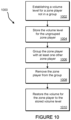 At block 1010, the volume setting for zone player 902 is restored to the stored volume level per block 1004. In other words, the volume for audio playback by the now ungrouped zone player 902 is set back to the volume level just prior to grouping. In one embodiment, the zone player 902 retrieves the stored volume level from memory and makes the adjustment. In one embodiment, the zone player 902 may verify first whether a change in volume has occurred since the last ungrouping, and if not, then the volume setting is left alone. In another embodiment, the zone player 902 may simply override the volume setting regardless of whether the volume changed since the last ungrouping. In yet another embodiment, the zone player 902 may determine whether it is continuing to play the music of the group as a stand-alone player, and if so, then the volume setting is left alone. In this embodiment, the volume level that is stored for the zone player may be updated to reflect the current volume level.