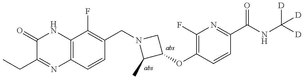 “Deuteroalkyl” refers to an alkyl radical, as defined above, that is substituted by one or more deuteriums. In some embodiments, the alkyl is substituted with one deuterium. In some embodiments, the alkyl is substituted with one, two, or three deuteriums. In some embodiments, the alkyl is substituted with one, two, three, four, five, or six deuteriums. Deuteroalkyl include, for example, CD3, CH2D, CHD2, CH2CD3, CD2CD3, CHDCD3, CH2CH2D, or CH2CHD2. In some embodiments, the deuteroalkyl is CD3.