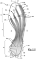 FIG. 11A-G are plan views of various examples of arrangements of fiber strands used in forming torsion plies of the outsole of FIG. 4 ;