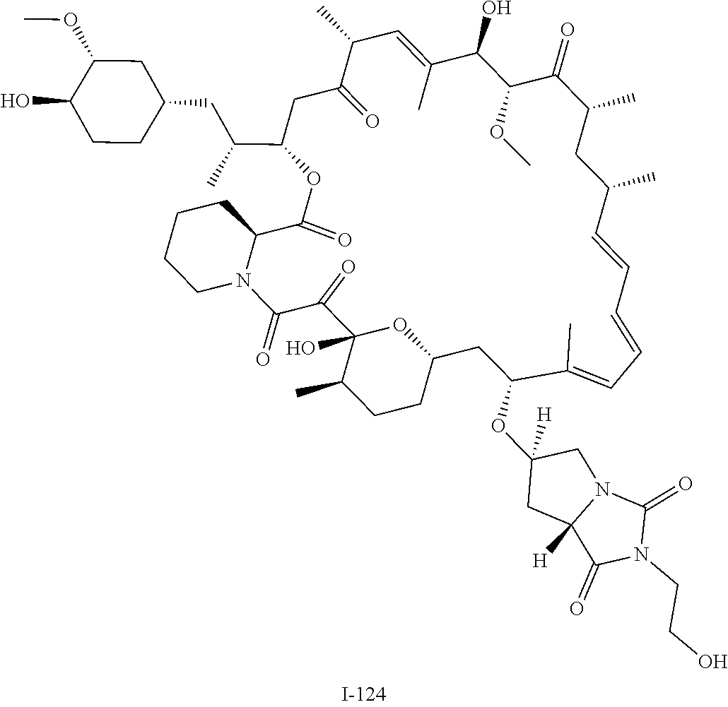 It will be appreciated that the term “rapamycin”, and structure thereof, recited throughout the specification is intended to encompass rapamycin and analogs thereof.