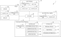 The control unit 23 is a control device that controls the components of the user terminal 20. For example, the control unit 23 obtains the user's desires on foods through the input unit 22, generates a personal profile on the basis of the obtained desires, and outputs the generated personal profile to the food selection apparatus 30 through the communication unit 21. The control unit 23 also obtains information based on a result of selection from the food selection apparatus 30 through the communication unit 21 and displays the obtained information on the display unit 24.