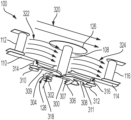 The signal is received at an input 318 of the first balun 128 and splits into two paths (as shown by arrows 318) via the hybrid balun/splitter 128. That is, the first balun 128 serves to both split the input signal into two paths, and also serves to convert a balanced signal (e.g., the input signal) into an unbalanced signal that is 180 degrees in phase difference between the unbalanced arms, and vice versa. The first balun 128 includes a first portion 300 that has a first arm 304 and a second arm 306 connected by a third arm 307. The first balun 128 also includes a second portion 308 that includes a first arm 309 that connects the first arm 304 of the first portion 300 to a first output 310, and a second arm 311 that connects the second arm 306 of the first portion 300 to a second output 312. The second arm 311 is oriented 180 degrees from the first arm 309. A first feed post 314 connects the first output 310 to the first feed arm 110, and a second feed post 316 connects the second output 312 to the second feed arm 114.