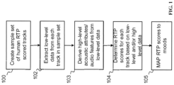 - FIG. 1 is an embodiment of a flow chart illustrating how tracks are sampled, low-level data is extracted and RTP scores are determined and mapped to moods, optionally with intensity levels.