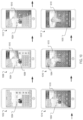 FIG. 8 is a sequence of screen shots depicting a slide animation effect on a mobile device. The slide animation can include a sliding of a current user interface view off of a vertical edge of the user interface while sliding a new view from another vertical edge of the user interface. In some implementations, the sliding animation can occur upon user request. For example, the user can touch or provide input gesture to the device that a change in the user interface is desired. The user touch or gesture can include a double-tap of a control button to indicate that a change is desired in a user interface of screen shot 802, for example. In some implementations, the user touch or gesture can include selection of a hardware button, an icon, or other menu item.
