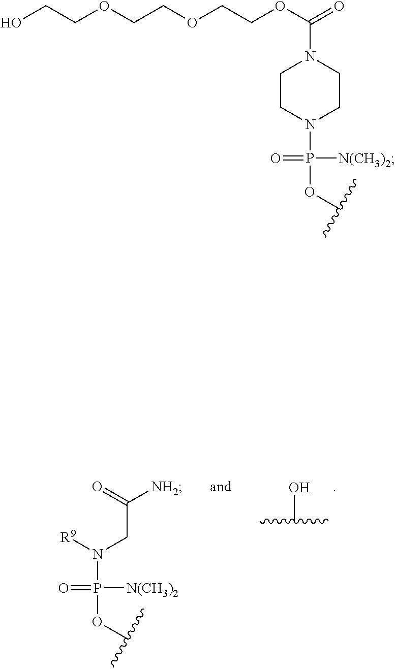 a 2′-O-[2-(N-methylcarbamoyl)ethyl] subunit optionally substituted with a phosphoramidate internucleoside linkage, a phosphorodiamidate internucleoside linkage, or a phosphorothioate internucleoside linkage,
