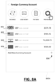 As shown in screen 800A, the card management user interface may allow the user to add foreign currency accounts to the user's record (e.g., banking record). The foreign currency accounts each hold funds that are denominated in their respective currencies. Account details, such as a current balance and exchange rate, for each of the foreign currency accounts 801 to 804 can be displayed on a single display page. The screen 800A also provides a user interface element 806 for adding more currency accounts.