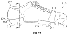 FIGS. 2A-2C depict an exemplary article of athletic footwear. FIG. 2A is a lateral side elevational view of the exemplary article of athletic footwear. FIG. 2B is an exploded perspective view of the exemplary article of athletic footwear. FIG. 2C is a sectional view along 2-2 of the exemplary article of athletic footwear.