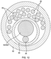 As shown in FIGS. 11 and 12 , within the mapping assembly 17, the contraction wire 35 extends through a plastic tube 55. In one embodiment, the plastic tube 55 comprise three layers, including an inner layer of polyimide over which a braided layer is formed, the braided layer comprising a braided stainless steel mesh or the like, as is generally known in the art. The braided layer enhances the strength of the plastic tube 55, reducing the tendency for contraction wire 35 to straighten the preformed curve of the mapping assembly 17. A thin plastic layer of polytetrafluoroethylene is provided over the braided layer to protect the braided layer from getting tangled with the lead wires 40 within the non-conductive cover 52. The plastic tube 55 has a proximal end anchored to the distal end of the intermediate section 14 in the third lumen 32 by glue or the like (FIG. 14A). The support member 54 extends through the plastic tube 55 with the contraction wire 35 (FIG. 14A). The distal ends of the support member 54 and the contraction wire 35 are soldered or otherwise attached to a small stainless steel tube 53 (FIG. 13 ). With this arrangement, the relative positions of the contraction wire 35 and the support member 54 can be controlled so that the contraction wire can be positioned on the side of the generally circular region 39 closer to the center of the generally circular region 39, as described above. The contraction wire 35 on the inside of the curve pulls the support member 54 to the inside of the curve, enhancing contraction of the generally circular region 39. Further, when the plastic tube 55 includes a braided layer, it keeps the contraction wire 35 from tearing through the non-conductive cover 52.