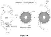 - FIG. 10 illustrates an example exchangeable optics system with magnetic exchangeable intraocular lens.