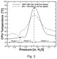 - FIG. 3 shows an air pressure vs. CPU temperature curve for a 2U new generation server, at 50% and 100% CPU utilization.