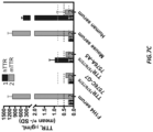 FIG. 13 shows results of an ELISA assaying serum levels of human TTR in wild type mice (F1H4), mice in which human TTR plasmids were introduced by hydrodynamic delivery (HDD), and mice in which a chimeric mouse/human TTR plasmid (region encoded by exon 1 is mouse, region encoded by exons 2-4 is human) was introduced by HDD. Two negative controls are shown, and human serum was used as a positive control.