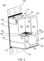 An intermediate side surface 222 may be disposed part way between the side surfaces 216 and 218 and may be generally parallel with the side surfaces. An intermediate rear surface 224 may be disposed part way from the rear surface 220 and may be generally parallel with the rear surface. A bottom intermediate surface 226 may be disposed part way between the top surface 212 and the bottom surface 214 and may be generally parallel with the top surface 212 and the bottom surface 214. An electrical or electronics receptacle 228 may be disposed in the bottom intermediate surface 226.