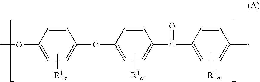In some preferred embodiments, each a is zero, such that the repeat units (RPEEK) are repeat units of formula: