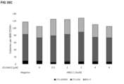 FIGS. 22A-D depict results from gene editing from mPB CD34+ cells electroporated with indicated doses of OLI8394-RNP and indicated doses of ssODN OLI16424 (“−4 nt− strand”) (Table 11). FIG. 22A depicts the percentage of indels detected by sequencing the HBG PCR product 72 hours after electroporation with indicated doses (2, 4, or 8 μM) of OLI8394-RNP and indicated doses (0, 1.25, 2.5, or 5 μM) of ssODN OLI16424 (“−4 nt− strand”). FIG. 22B depicts the percentage of −4 nt deletions (“−112:-115 deletions”) detected by next generation sequencing (NGS) of the HBG PCR product after electroporation with indicated doses (2, 4, or 8 μM) of OLI8394-RNP and indicated doses (0, 1.25, 2.5, or 5 μM) of ssODN OLI16424 (“−4 nt− strand”). FIG. 22C depicts frequency of 4.9 kb deletions between HBG1 and HBG2 after electroporation with the indicated doses (2, 4, or 8 μM) of OLI8394-RNP and indicated doses (0, 1.25, 2.5, or 5 μM) of ssODN OLI16424 (“−4 nt− strand”). Deletions were measured via ddPCR. FIG. 22D depicts the percentage of gamma-globin chains over total beta-like globin chains (gamma chains/[gamma chains+beta chain]) as measured by UPLC analysis of the cell lysates from the erythroid progeny of mPB CD34+ cells after electroporation with the indicated doses (2, 4, or 8 μM) of OLI8394-RNP and indicated doses (0, 1.25, 2.5, or 5 μM) of ssODN OLI16424 (“−4 nt− strand”).