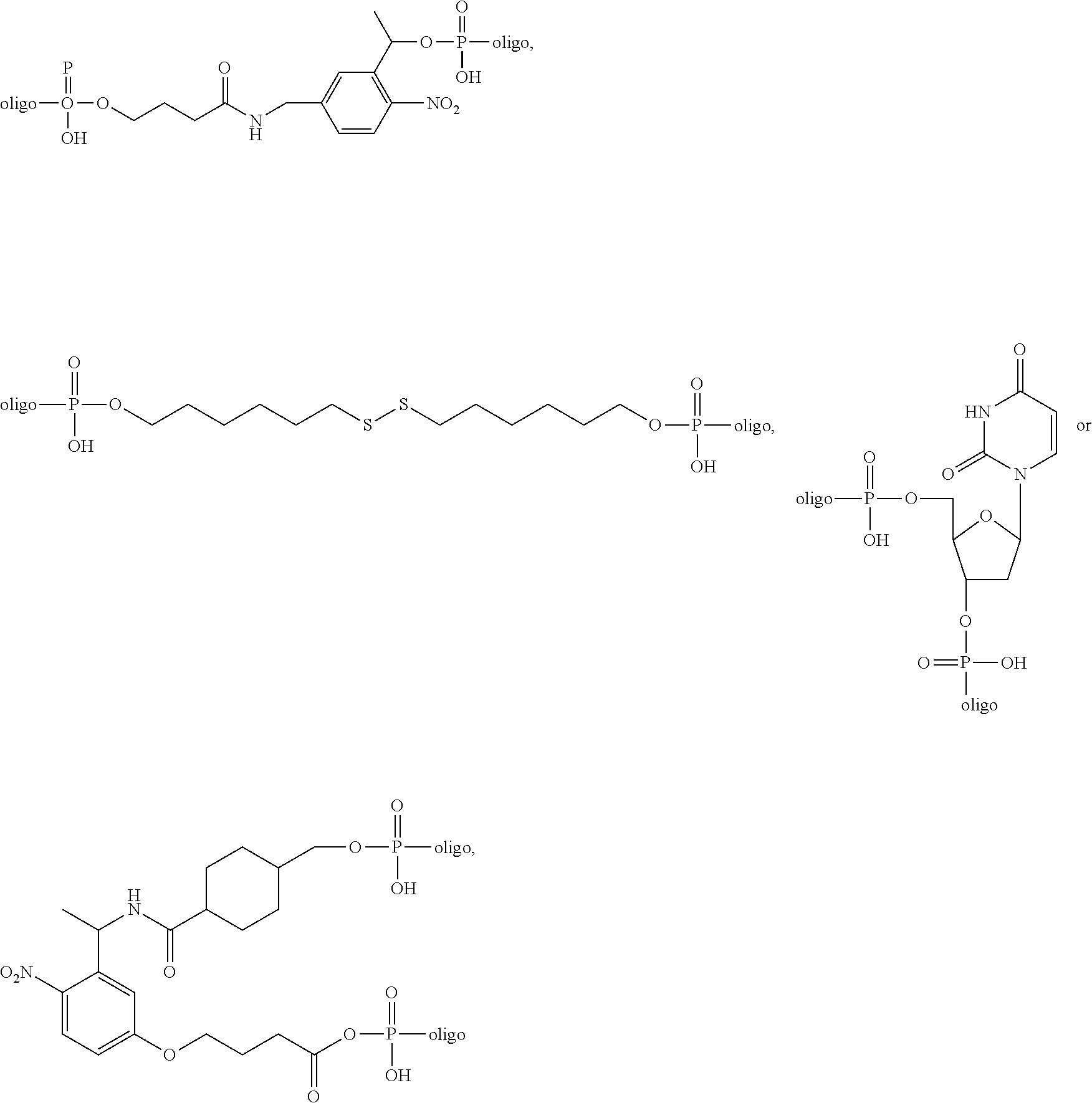 FIG. 10 shows possible positions for cleavable linker modifications within an exemplary reporter probe of the present disclosure.