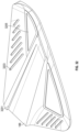In some embodiments, the toewrap portion 3701 creates an angle with respect to the rear portion 128 and/or outermost surface of the shim or badge 188. For example, the toewrap portion 3701 can form an angle with respect to the rear portion 128 of the shim or badge 188. For example, the angle can be greater than about 40 degrees, such as between about 40 degrees and about 120, such as between about 60 degrees and about 100 degrees, such as about 80 degrees, about 90 degrees, about 100 degrees, or about 110 degrees. As such, the shim or badge 188 can wrap from the toe portion 104 onto the rear portion 128 forming at least a 40-degree angle as measured between the outermost surface of the toe portion 104 and the outermost surface of the rear portion 128.