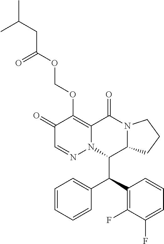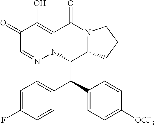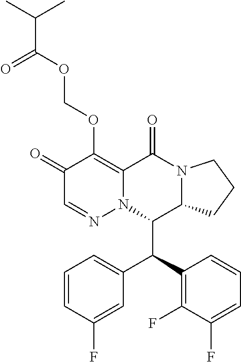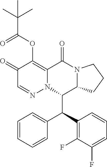- 14 (9aR,10S)-10-((R)-(3-fluorophenyl)(phenyl)methyl)-4-hydroxy-8,9,9a,10-tetrahydro-7H-pyrrolo[1′,2′:4,5]pyrazino[1,2-b]pyridazine-3,5-dione;