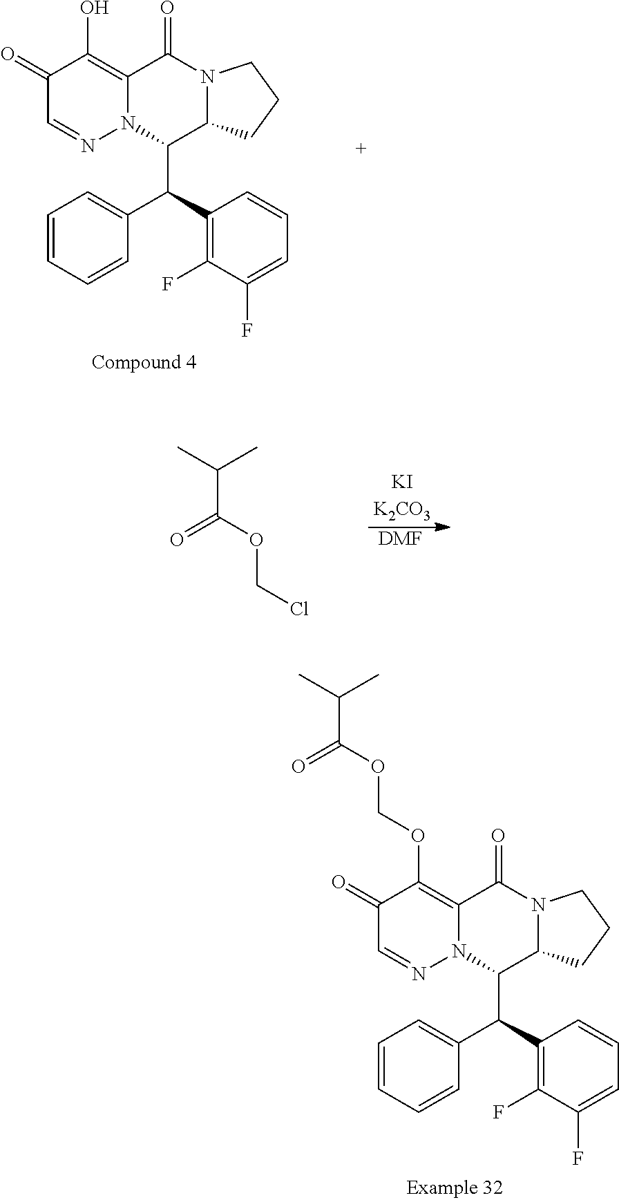 - 5 12-(bis(4-fluorophenyl)methyl)-4-hydroxy-7,8,9,10-tetrahydro-12H-dipyridazino[1,2-a:1′,6′-d][1,2,4]triazine-3,5-dione;