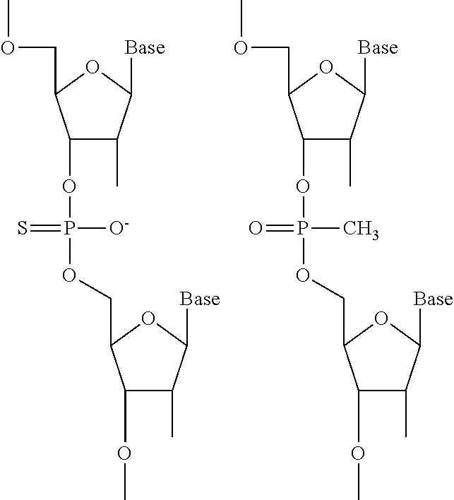 where B is a heterocyclic base moiety; R1, R2, and R3 are independently selected from hydrogen, halogen, alkyl or alkoxy; and J is an internucleotide linking group linking to the adjacent nucleotide of the polynucleotide.