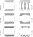 FIGS. 31(A)-31(E) each illustrate a different embodiment of a body element including different filler zoning options.