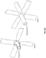 FIG. 87 depicts the system 1250. If the blades 1234 fold upstream while the struts 1242 fold downstream, then the upstream struts 1242 may be positioned between the folding rotor blades 1234 resulting in the folded device being as short as possible.