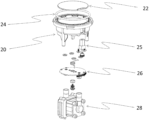- FIG. 9 depicts an exploded isometric bottom view of an air valve and sensor subassembly attached to a drying chamber in a dryer;