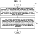 In such an exemplary embodiment in FIG. 12 at Step 180, the project management application service 30 a periodically and automatically updates the created set of plural construction detail attributes 45 and the one or more electronic indexes 49 to include new types of construction detail components 43 in the XD modeling program 41, 41 a.