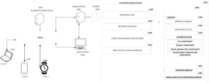 The authentication system 102A may include one or more processing units 120B (e.g., one or more general purpose processors and/or high speed graphics processors), one or more network interfaces 122B, a non-transitory computer-readable medium drive 124B, and an input/output device interface 126B, all of which may communicate with one another by way of one or more communication buses. The network interface 124B may provide services described herein with connectivity to one or more networks or computing systems (e.g., venue systems/kiosk systems, user devices, event promoters, seating chart visualization systems, etc.). The processing unit 120B may thus receive information (e.g., verification/authentication data (e.g., biometric data, user identifiers, device identifiers, etc.), verification/authentication requests, etc.) and/or instructions from other computing devices, systems, or services via a network, and may provide responsive data and/or execute instructions. The processing unit 120B may also communicate to and from memory 124B and further provide output information via the input/output device interface 126B. The input/output device interface 126B may also accept input from one or more input devices, such as a keyboard, mouse, digital pen, touch screen, microphone, camera, etc.