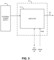 The external power supply 45 receives an input power VIN, which may be any DC or AC input power, to be conditioned by the external power supply 45, for output directly to the amplifier 42 as VDC. A voltage regulator 46 receives VIN from the input power source 12 and is configured to provide electrical power to the amplifier 42. Accordingly, the voltage regulator 46 is configured to convert the received electrical power into a power signal at a proper voltage for operation of the respective downstream components. The voltage regulator 46 may be any voltage regulator known in the art that is capable of converting in input voltage to an output, direct current voltage, which may include one or more DC/DC converters, amplifiers, transistors, transformers, inverters, switches, switching systems, among other known voltage regulators. To that end, the voltage regulator 46 may be configured to step up VIN to result in VDC, step down VIN to result in VDC, and/or maintain a substantially similar voltage VIN to result in VDC.