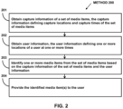 FIG. 2 illustrates method 200 for identifying media items. The operations of method 200 presented below are intended to be illustrative. In some implementations, method 200 may be accomplished with one or more additional operations not described, and/or without one or more of the operations discussed. In some implementations, two or more of the operations may occur substantially simultaneously.