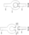 As shown in FIG. 21D, socket element 2117 includes an opening sized and shaped to receive tab element 2115. Unlike the tab and socket elements of shunt 2000, tab element 2115 may be fitted within the opening of socket element 2117 without thermally contracting tab element 2115 or thermally expanding socket element 2117. Instead, when tab element 2115 is disposed within the opening of socket element 2117, retaining ring 2124 may be disposed over both tab element 2115 and socket element 2117 to thereby maintain the rigid connection between neck region 2104 and second end region 2106 at second connection 2105, as shown in FIG. 21B, while providing a smooth, continuous transition from neck region 2104 to second end region 2106 throughout the range of lumen diameters of neck region 2104. Similarly, when tab element 2113 at proximal end 2112 of neck region 2104 is disposed within the opening of socket element 2111 at distal end 2110 of first end region 2102, retaining ring 2124 may be disposed over both tab element 2113 and socket element 2111 to thereby maintain the rigid connection between neck region 2104 and first end region 2102 at first connection 2103, while providing a smooth, continuous transition from neck region 2104 to first end region 2102 throughout the range of lumen diameters of neck region 2104. Accordingly, first end region 2102 and second end region 2106 may bend uniformly relative to neck region 2104 as a single element would. In some embodiments, retaining rings 2124 may be made from radiopaque materials such that they are visible under fluoroscopy.